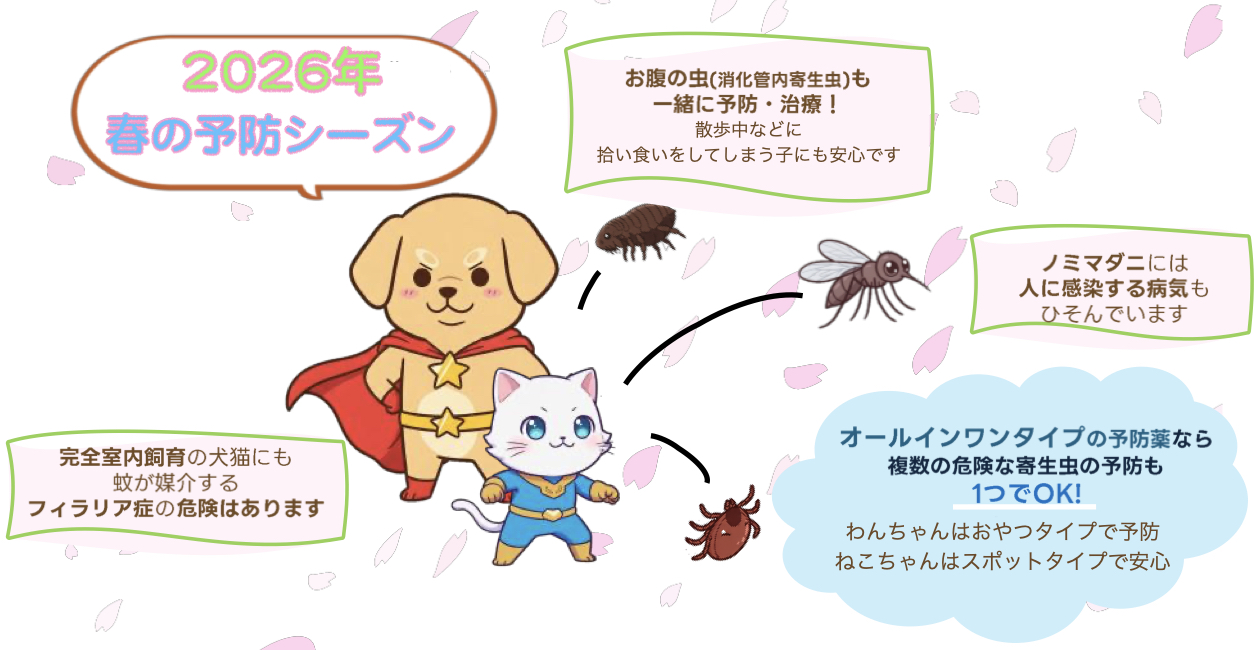 春を迎え、わんちゃんねこちゃんの予防シーズンが始まりました。