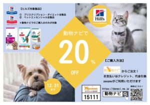 動物ナビ限定!ヒルズ製品20%OFF