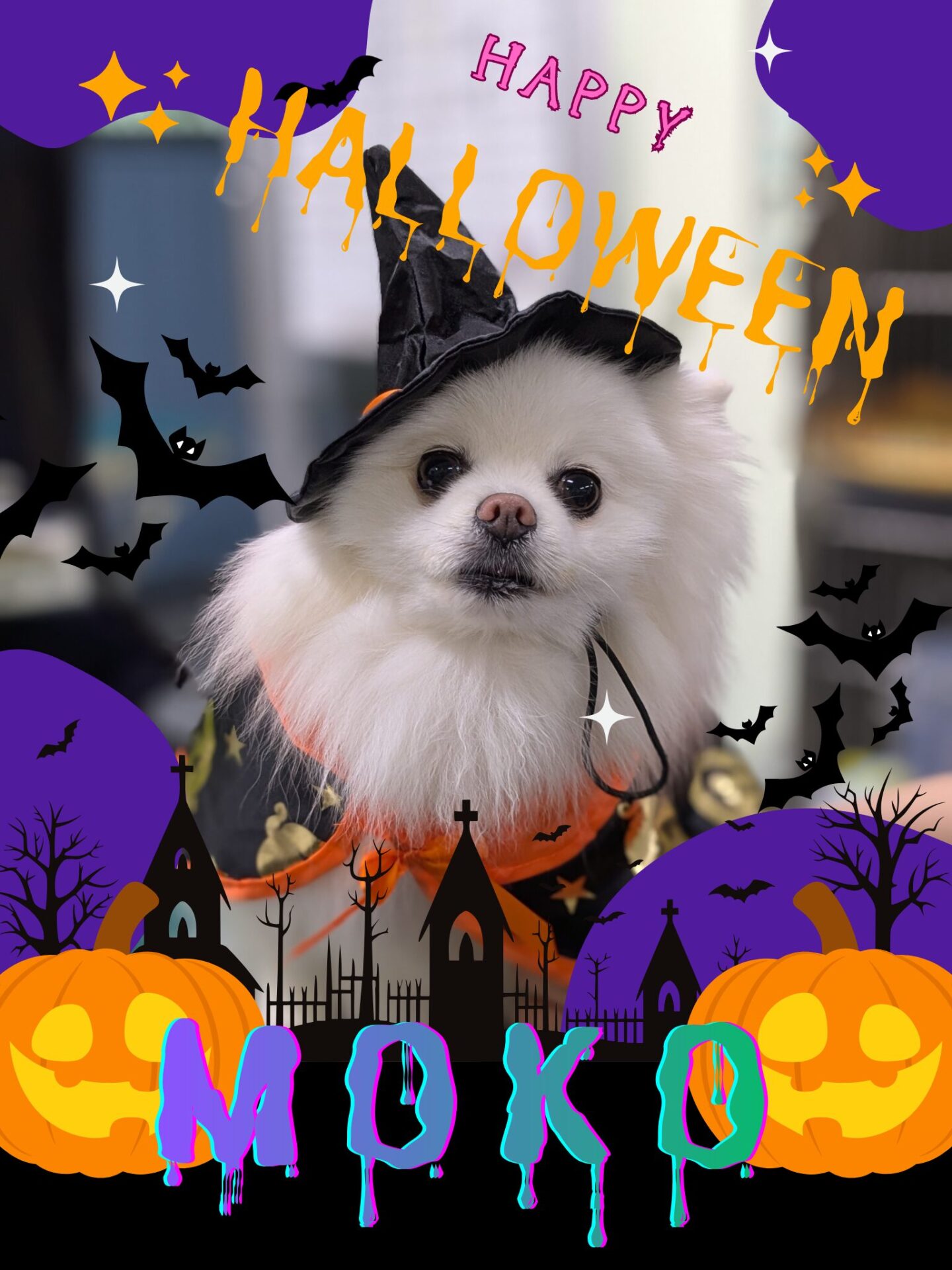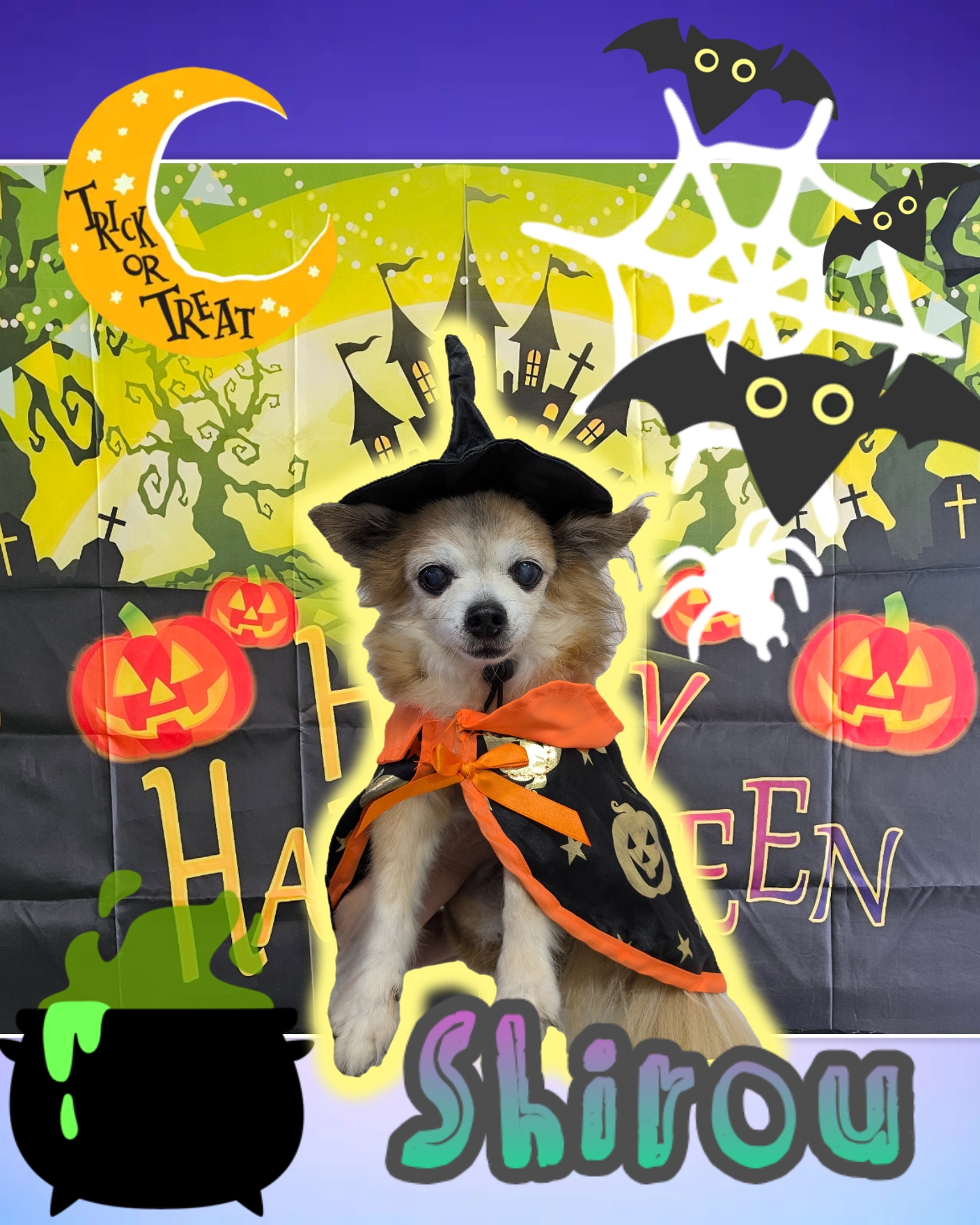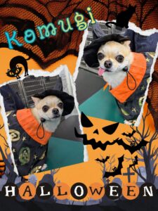 もこちゃんは、帽子とマントが映える真っ白なフサフサな毛でオシャレ魔女の魔法をかけてくれました❤️