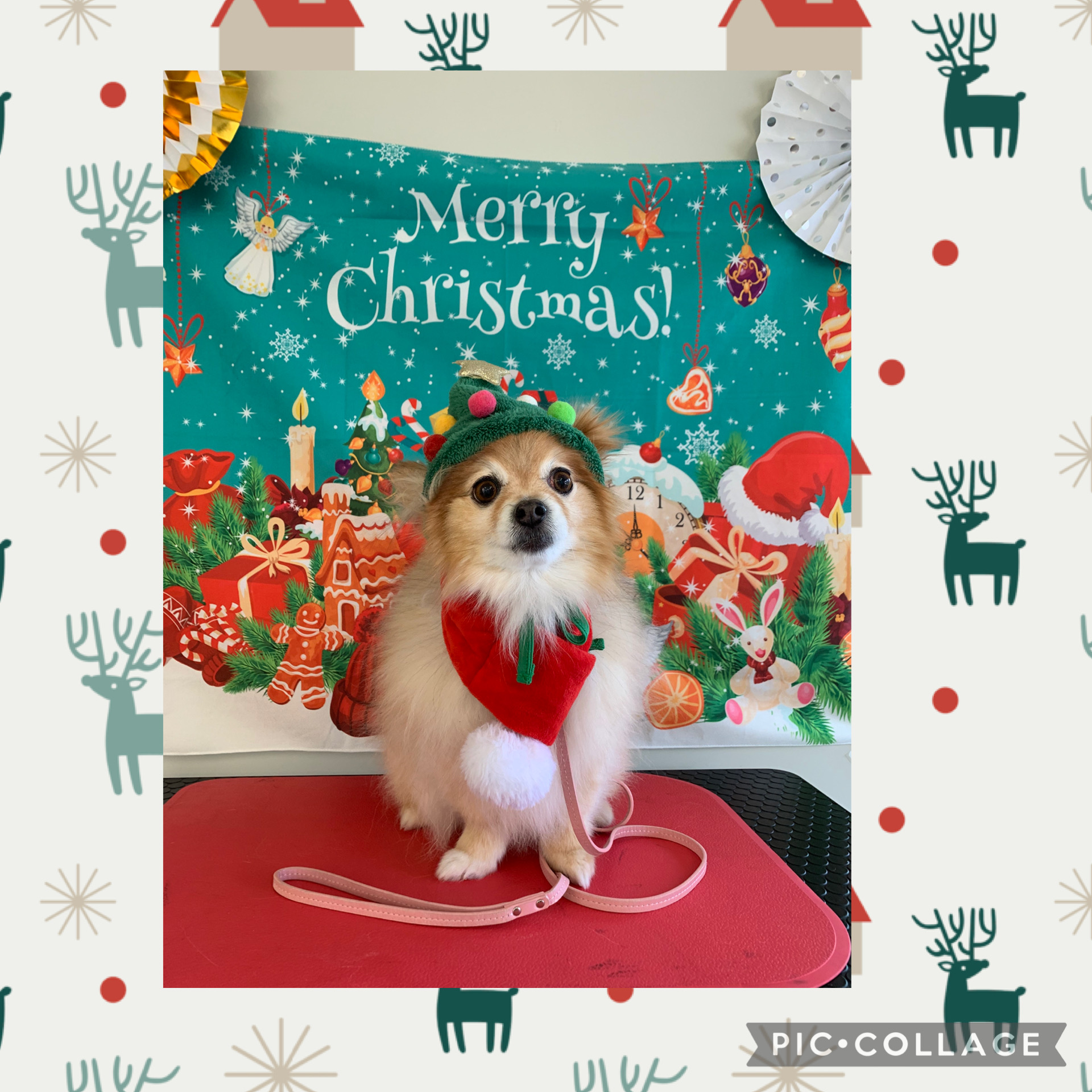 赤いマフラーとクリスマスツリーのかぶり物がとってもお似合いですね!