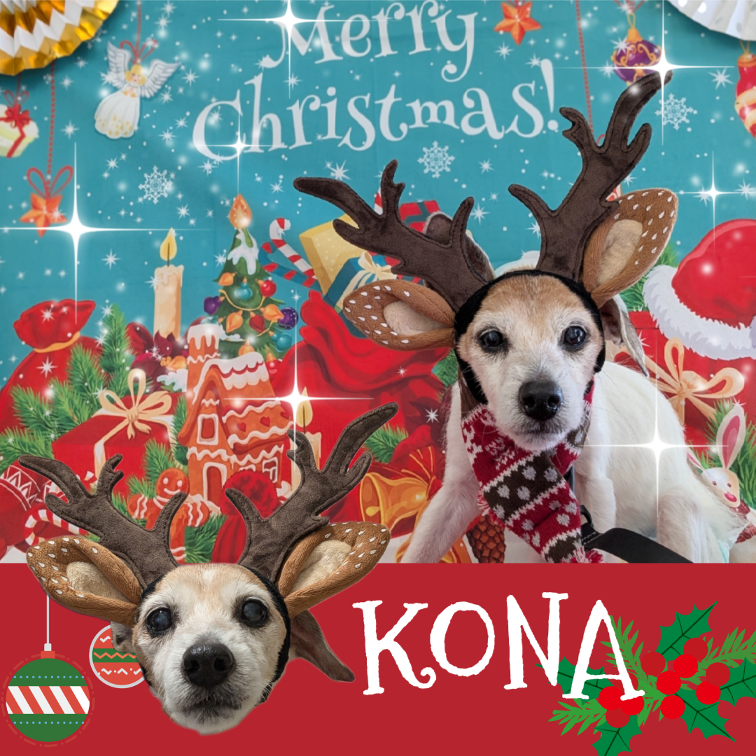 真っ赤なお鼻…じゃなくて真っ黒でピカピカのお鼻のトナカイさんは、ジャックラッセルテリアのコナちゃん🎵
