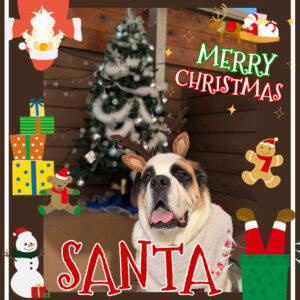 トップバッターはサンタさん……じゃなくてトナカイに扮したセントバーナードのサンタくん🎅🐾!!(通称さんちっち💕)