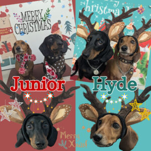 ブログ看護師 三橋の投稿メリークリスマス🎄🌟動物看護師の三橋です!怒涛のクリスマスフォトブログ、私からもどんどんご紹介していきます😁まずは、角がお似合いすぎる…!Mダックスのハイドくんとジュニアくんファミリー🌟ふたりとも、とってもカッコよく着こなし(着けこなし…?...